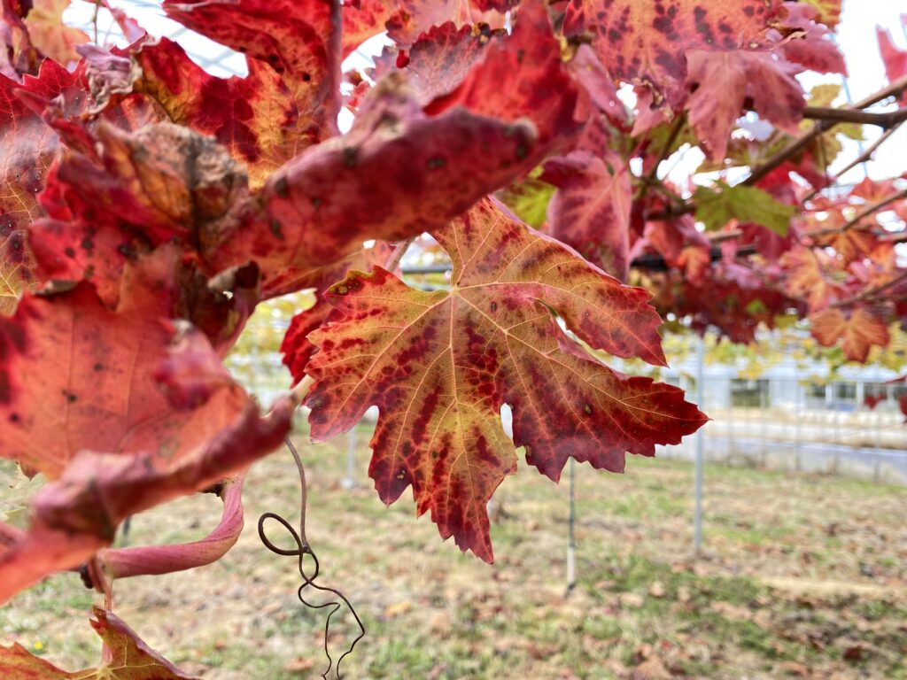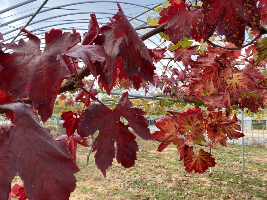 特に海外品種とのかけ合わせたぶどうは、紅葉が鮮やかな印象があり、その美しさに目を奪われます (*´▽`*)