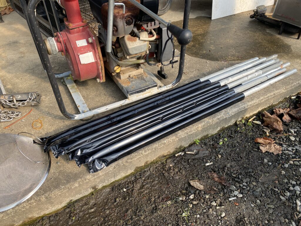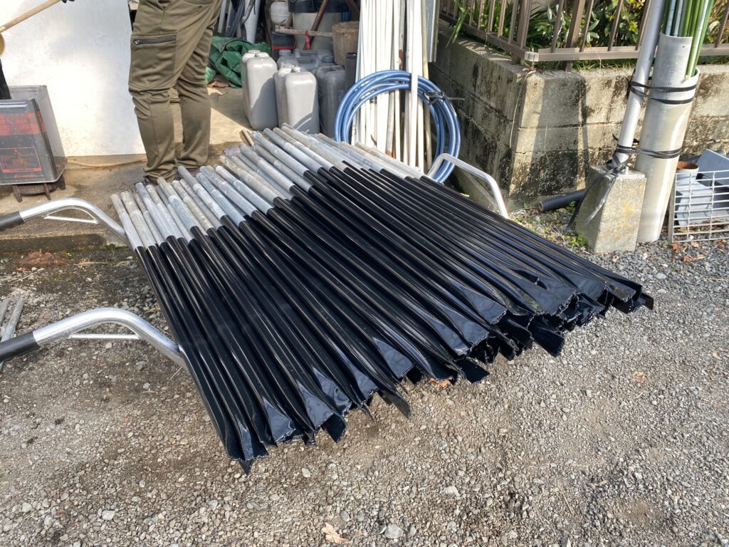 中古ビニールハウスの移設を例にとると、土中に埋まっていた支柱などは、錆びている部分を切り落として継ぎを施せば充分に使用できますし、土中部分のパイプを補強する熱収縮チューブなども、施工は非常に容易です。
